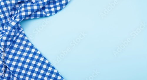 Background featuring blue and white checkered fabric with copy space for themed decoration