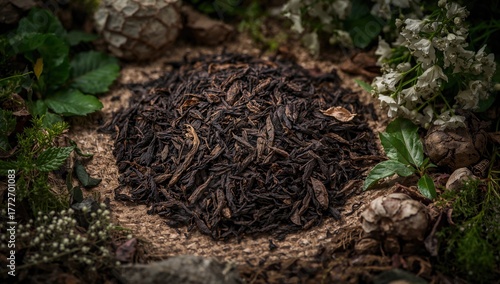 Background of black tea leaves, rich in antioxidants, Earth Day