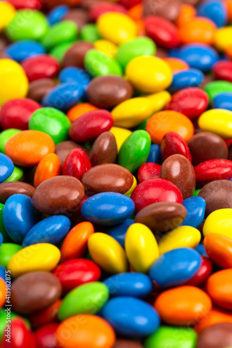 Background of Rainbow Colored Candy Coated Chocolate Buttons