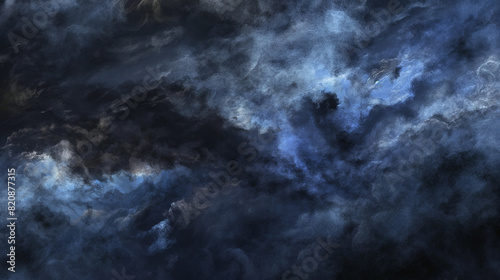 Background of Renaissance Dark Stormy Cloud Painting: Blue, Sapphire, Menacing Colors in Evening Dramatic Style"