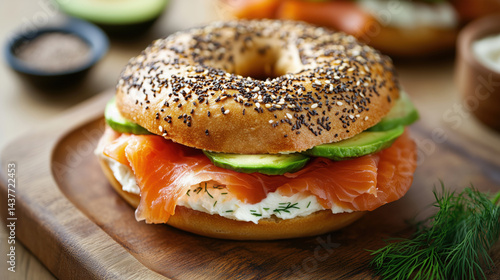 bagel, salmon, avocado, cheese, cream, food, snack, sandwich, bread, sesame, poppy, seed, dill, fish, seafood, meal, lunch, breakfast, dinner, fresh, smoked, crispy, tasty, epicure, rustic, wooden, board, herb, nourishment, protein, orange, green, soft, juicy, savoury, healthy, kitchen, cooking, traditional, homemade, delicious