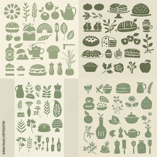 baked, baked goods, bakery, bread, dessert, wheat, flour, shop, illustrated, illustration, block, cut, stencil, icon, object, flat, glyphs, cream, vintage, retro, antique, generative, ai, minimal, drawn