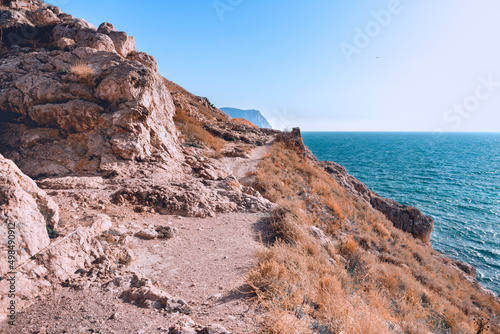 mountain, landscape, rocky, seascape, sea, slope, black sea, crimea, autumn, bay, beautiful, blue, boulder, city, cliff, closeup, coast, coastline, day, daytime, dry, edge, fall, grass, harbor, nature, november, ocean, outdoors, outside, overlook, resort, ripple, rock, russia, serene, shore, sky, stone, surface, town, travel, view, water, wave, wild, yellow