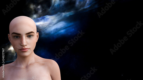 woman, female, beautiful, illustration, imagination, head shot, fantasy, science fiction, science fiction, space, nebula, star, black, front view