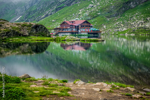 Balea Lac Chalet mountain guesthouse over Balea Lake next to Transfagarasan road in Carpathian Mountains, Romania