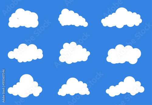 Balloon Puffy White Cloud Vector Illustration – Soft Fluffy Cumulus in Blue Sky, Abstract Weather Icon Set for Web, Summer Sun Climate Design Background