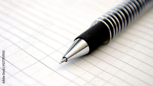 pen, paper, writing, lined, white, blank, notebook, stationery, office, tool, silver, black, point, document, education, close, up, spiral, metal, design, line, background, surface, business, study, planning, composition, sharp, sharpened, macro, texture, horizontal, equipment, instrument, nobody, copy, space, grid, steel, chrome, ring, glossy, reflective, elegant, clean, simple, minimalism, still
