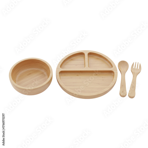 bamboo, children, dinnerware, plate, bowl, spoon, fork, utensil, environmentally friendly, natural, sustainable, children, feeding, isolated, cut-out, nobody, studio shot, high-quality