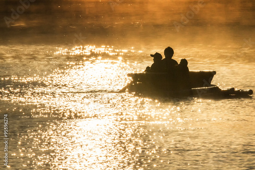 Bamboo rafting river at dawn