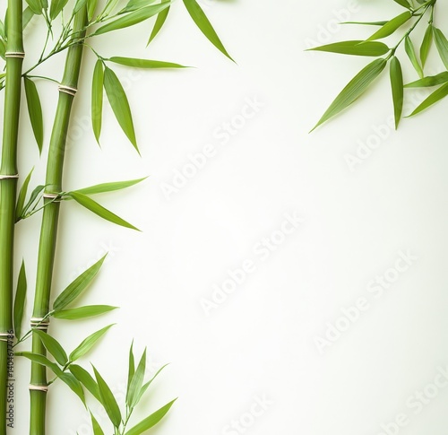 Bamboo sticks with green leaves on a white background