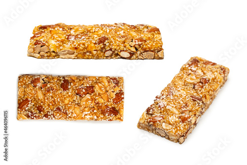 Bar with mix of nuts isolated on a white background.