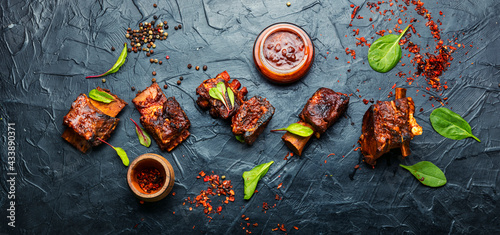 meat, bar-b-q, beef, rib, grill, bone, bar-b-q, food, beefy, fried, grilled, roasted, marinade, veal, roast, delicious, board, cut, smoked, marinated, black, fat, spicey, eat, herb, sliced, tasty, table, burnt, piece, piquant, glazed, charred, sauce, ketchup, gravy, spinach