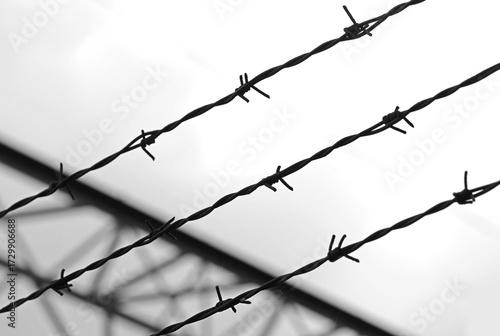 barbed wire, black-and-white, black-and-white, border, camp, concentration, danger, death, died, drama, dramatic, dramatically, effect, emigration, fear, isolation, gaol, no trespassing, gaol, razor wire, refugee, war, warning, wire