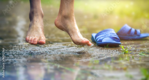 puddle, rain, water, jump, drop, splash, baby, foot, bare, barefoot beach, weather, summer, walk, man, person, 1, body part, closeup, sun, sunlight, foot, ankle, toe, mud, warm, cheerful, fun, splash, season