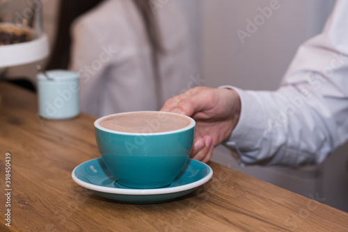 Barista guy gives delicious, aromatic and invigorating Americano coffee
