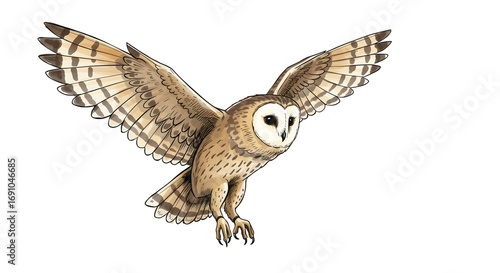 Barn Owl in Flight - Illustration png clear alpha channel cutout isolated on transparent background