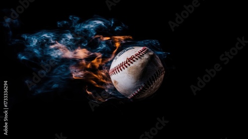 baseball. Baseball with dramatic fiery effect isolated on pure black background with intense flames. event key visuals, club posters, designed for sports event promotions and stadium branding.