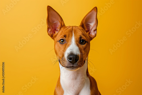 Basenji dog on minimalistic colorful background with Copy Space. Perfect for banners, veterinary ads, pet food promotions, and minimalist designs.