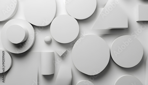 Basic geometric shapes like circles, squares, or triangles in a single color, arranged in a balanced composition.