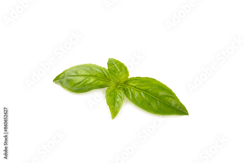 Basil isolated on white background. Fresh organic basil leaves isolated on white background. Spices. Vegan.