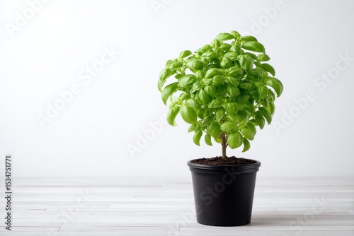 basil, plant, pot, growing, green, herb, culinary, fresh, indoor, background, neutral, foliage, healthy, aromatic, cooking, gardening, food, ingredient, flora, botany, still, life, table, organic, growth, leaf, black, container, cultivated, studio, closeup, nature, minimal, domestic, white, clean, simple, stem
