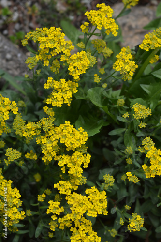 Basket of Gold Compacta yellow flowers