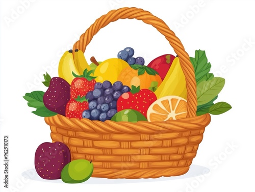 basket, fruit, vegetable, illustration, digital artwork, berry, citrous, banana, healthy, fresh, wicker, food, apple, strawberry, grape, blueberry, natural, colourful, diet, organic, produce, market, vitamin, snack, tropical, juicy, harvest, vegan, vegetarian, summer, fruit, isolated, white, grape, red, ripe, green, orange, berry, easter, apple, strawberry, yellow, vegetable, autumn