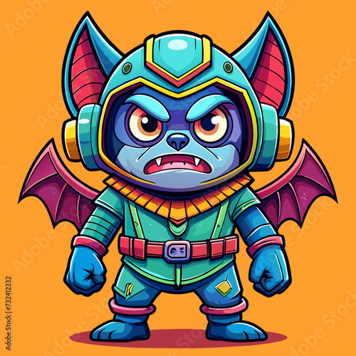 Bat Angry , cute, style , Big eye , Full Human Body , art 90 style , space suit, headset
