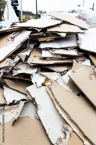 Bauschutt. Gipskartonplatten im Container