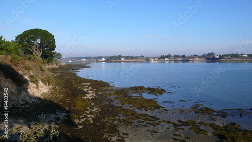 sea, shore, morning, dawn, sunrise, sunset, low tide, sky, sun, gold, backlight, calm, spiritual, morbihan, brittany, france, rock, tree