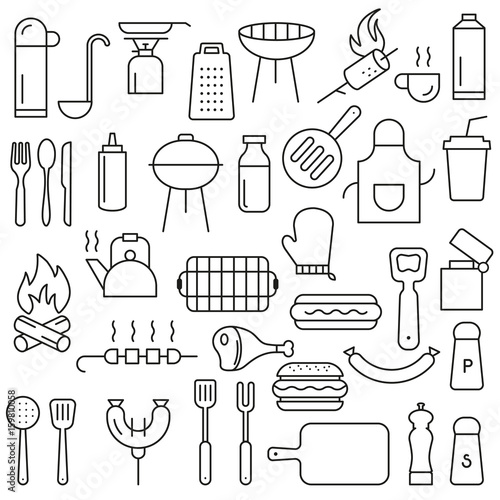 apron, art, bar-b-q, bar-b-q, bar-b-q, beef, black, burger, collection, cook, cooking, design, dog, fire, fish, food, fork, graphic, grill, grilled, grilling, hamburger, heat, hot, icon, icon, illustration, cyberspace, ketchup, kitchen, line, linear, match, meat, mustard, object, outline, party, picnic, sauce, sausage, set, signs, steak, symbol, thin, vector, web, white