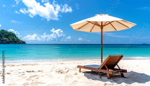 beach, umbrella, sea, sand, summer, ocean, chair, vacation, sky, travel, tropical, holiday, relax, parasol, water, island, sun, coast, resort, paradise, relaxation, sunbed, blue, tour tourism, chair