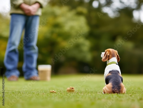 beagle, dog, owner, park, green, grass, pet, animal, waiting, treat, training, summer, companionship, leash, sharpened, cute, happy, playful, loyal, bark, tail, nature, scene, lifestyle, friendship, joy, bond, calm, relaxation, care, management, food, reward, breed, canino, eye, attentive, atmosphere, furry, adorable, behaviour, moment, leisure, excitement, parkland, scenic, fun
