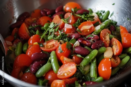 salad, food, summer, tomatoes, healthy, diet, meal, cookery, dish, onion, cucumber, bean, side dish, red onion, dressing, fresh, mixed