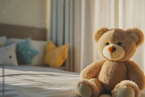 Bear Close-Up in Joyful Room with Sunshine Effects