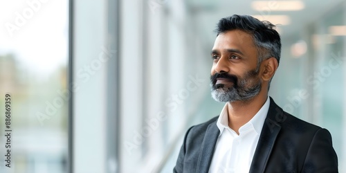 bearded, indian, businessman, office, hallway, confident, contemplating, future, success, professional, entrepreneur, executive, leader, corporate, ethnicity, beard, business, contemplation, career, ambition, determination, motivation, leadership, strategy, planning, vision, goal, achievement, in