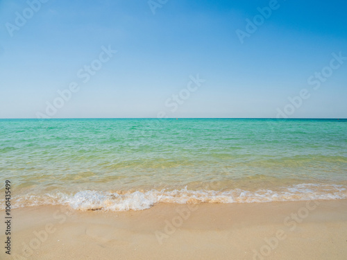Beautiful horizon landscape summer season panorama front view point tropical sea beach white sand clean and blue sky background calm nature ocean wave water travel at Sai Kaew Beach thailand holiday
