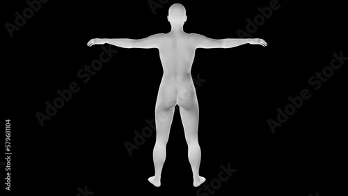 illustration, three-dimensional, rendering, isolated, background, human, body, female, athletic, mesh, ai, robot, simple, sport, pose, posing, young, adult, naked, anatomy, shape, naked, statue, marble, material, white, shadow, light, beautiful, study, drawing, back, view, behind