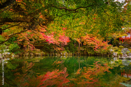 Beautiful autumn in japanese garden with colorful maple trees, Kyoto, Japan