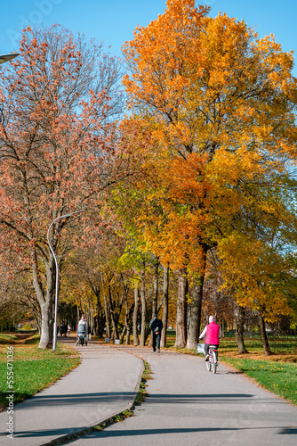Beautiful autumn park. Panorama of the city park in sunny weather