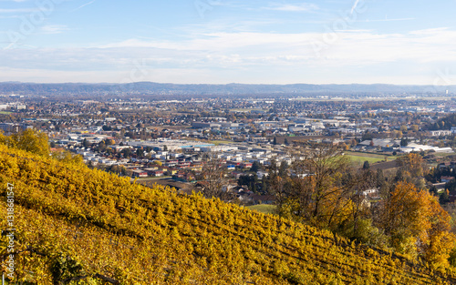Beautiful autumn view with vineyards in the city of Graz, Austria