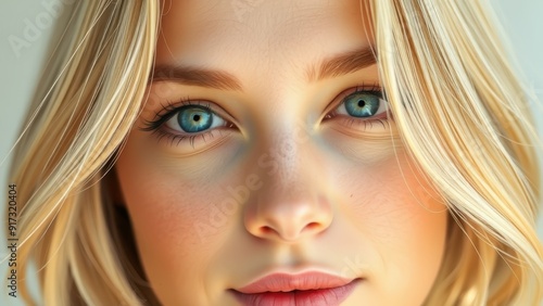 Beautiful blond young woman face close up. Natural looking. Banner for beauty skin body care bio eco cosmetics concept