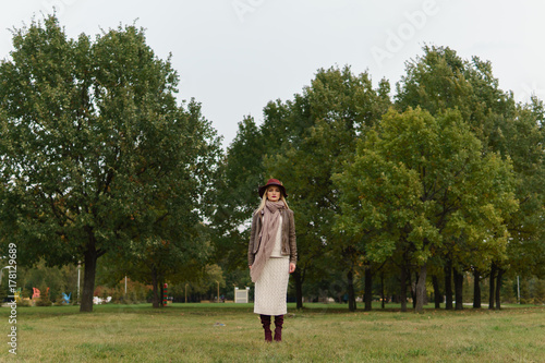 woman, hat, fashion, autumn, young, portrait, burgundy, female, model, beauty, girl, lifestyle, make-up, lady, back, city, face, attractive, pretty, season, park, street, vogue, style, red, view, nature, clothes, walking, through, hair, skin, happy, hand, white, knitted, wearing, elegant, coat, luxury, glamour, casual attire, outside, clothing, trendy, banner, billboard, copy, space