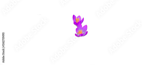 Beautiful bright purple blooming crocus isolated on white and transparent background
