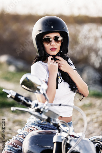 woman, motorbike, motorcycle, beautiful, biker, person, rider, girl, female, motor, young, adult, model, attractive, sexy, caucasian, pretty, fashion, lady, lifestyle, beauty, helmet, jean, single, freedom, sunglasses, vintage, adventure, driver, portrait, black, motorcyclist, machine, style, chopper, speed, vacation, nature, leisure, glamour, hair, stylish, classic, glamourous, jacket, expressive, brunette, sensuality, costume