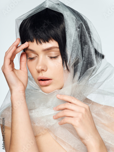 woman, beauty, young, beautiful, portrait, face, cephalalgia, white, person, bed, pain, head, hand, sad, health, isolated, people, depression, spa, skin, care, model, stress, ache, massage