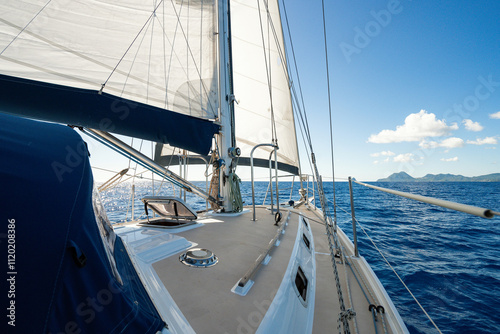Beautiful charter sailing yacht sailing in the Caribbean with full sails up on a beautiful sunny day