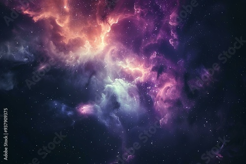 Beautiful dark space background with stars, nebulae and clouds. Abstract fantasy universe backdrop