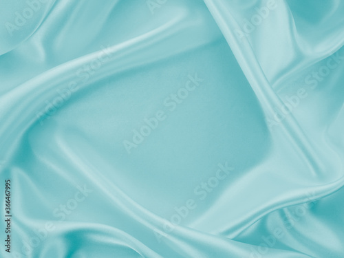 Beautiful elegant wavy turquoise silk or satin luxury cloth fabric texture, abstract background design.