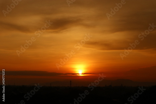 Beautiful evening sunset morning sunrise scenery from rooftop with amazing clouds and red sky in the background